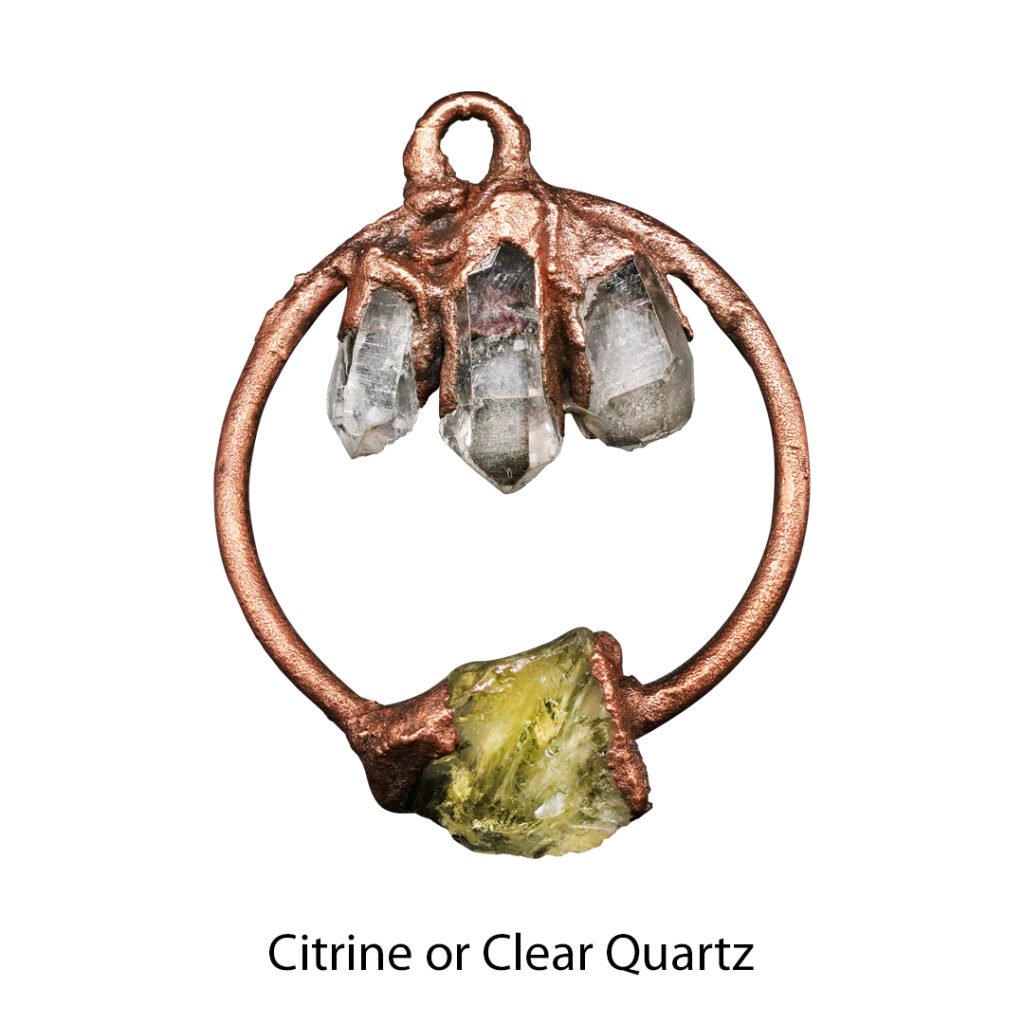 Electroformed jewellery highlights the untouched charm of crystals and minerals, locking in their natural structure while adding a radiant metallic finish.