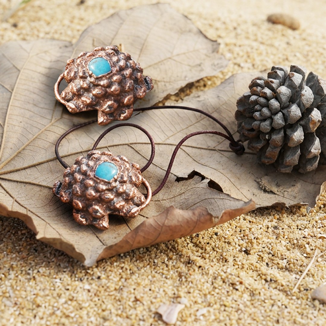 Copper forms around the pinecone texture, creating a sculptural and natural metal surface.